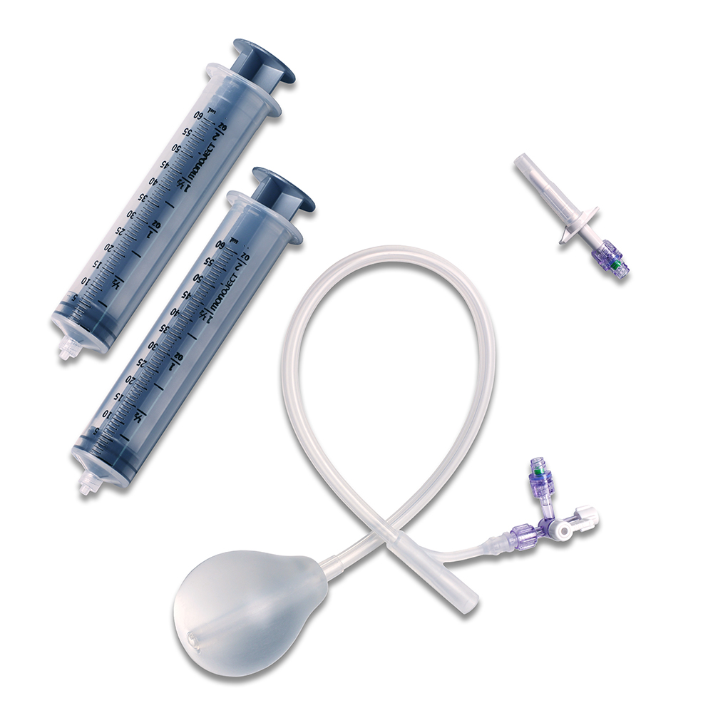 The innovative EasyFill™ design allows for single-person inflation and includes a single syringe and a tubing set (saline bag not included in kit).